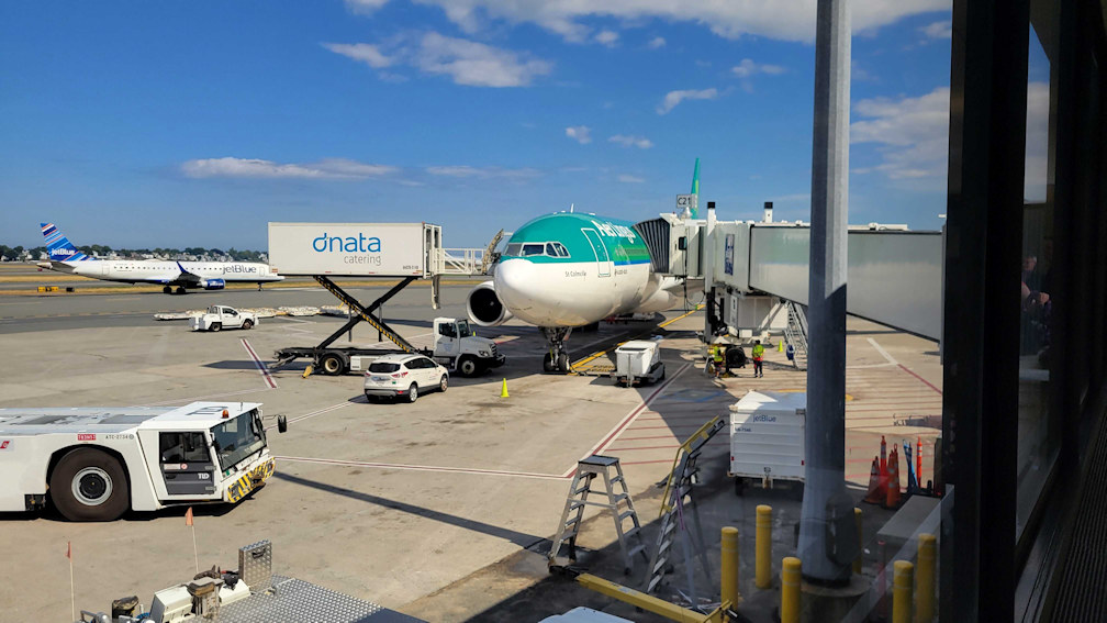 Leaving Logan Airport in Boston and arriving at Dublin Airport.